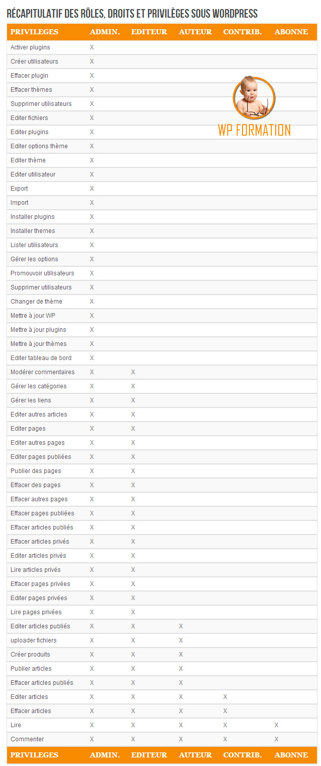Récapitulatif des Rôles, droits et privilèges sous WordPress